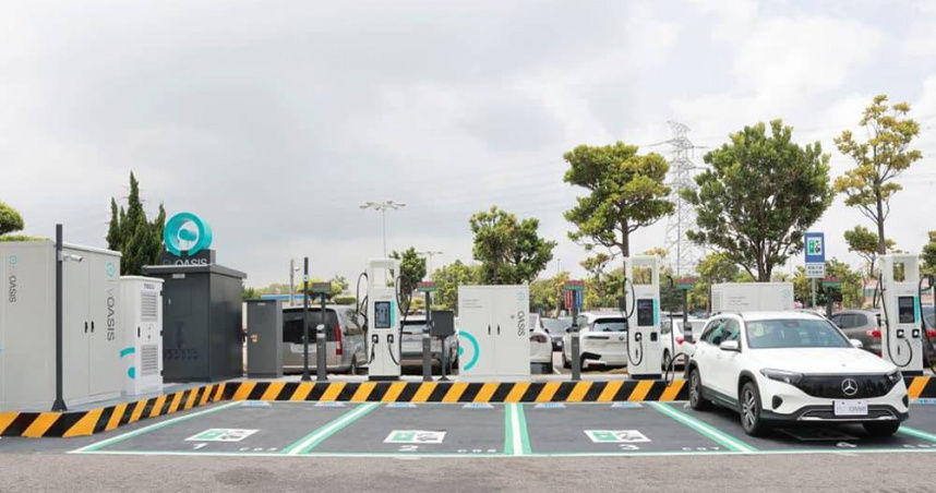 EVOASIS強調,為了更高效使用電力,引入「智能充電容量調節機制」。當DC 快充站的CCS1或CCS2車位已滿時,正在充電的車位會自動將充電容量調整至85%,這樣不僅能避免電池過度充電,還能讓等待的車主更快接上充電,提升整體充電效率並縮短等待時間。