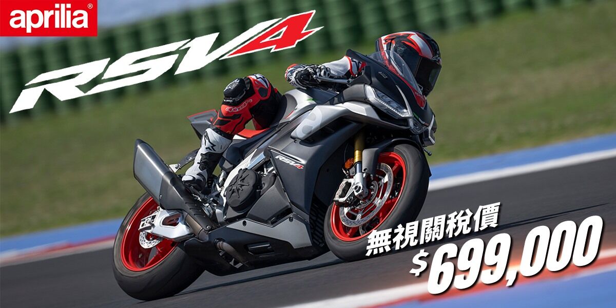 「2025國際重型機車展」開幕在即,義大利二輪重機品牌Aprilia總代理摩托之星也在官方臉書釋出優惠,針對2023年出廠的RSV4 STD、RSV4 Factory仿賽跑車出清,其中RSV4 STD從原價81.9萬降價12萬,限時回饋價69.9萬;而配備更高檔的RSV4 Factory也從原價106.9萬,限時回饋價89.9萬,降價幅度高達17萬!