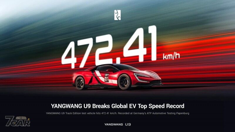 中國大陸汽車製造商 BYD 宣布,旗下 Yangwang U9 Track Edition 在德國 ATP Automotive Testing Papenburg 測試場創下 472.41 km/h(293.54 mph) 的最高時速,正式超越 Rimac Nevera R,成為全球最快電動車。