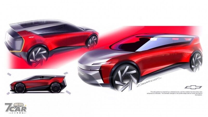 這款概念車由設計師 Charles Huang 操刀,他在上海設計中心完成多張草圖與高擬真渲染圖,從呈現方式來看,原廠希望展現 Chevrolet 未來在電動車領域可能的視覺語彙。車身比例看起來是一台小型跨界車,略帶有 Bolt 系列的影子,同時透過大尺寸輪圈與雙色車身強化視覺張力。車頭採用純電車常見的封閉式造型,搭配分離式 LED 頭燈與可發光的 Chevrolet 車徽,將品牌辨識度用更電動化的方式延伸,而車側則以簡潔折線與壓低裝飾細節的方式維持乾淨俐落的視覺。