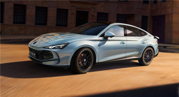 新款 MG7 延續轎跑跑格設計風格,車頂線條從A柱延伸至車尾,形成優雅的溜背輪廓,整體造型更顯動感,本次新增冰島藍車色選項,並全車系標配19 吋鋁圈、三段式尾翼,視覺上更顯年輕化。