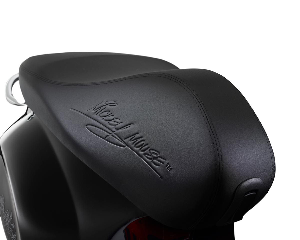 ▲黃色的輪圈呼應了米奇的鞋子,而黑色的後視鏡則彷彿他獨特的圓耳朵。車身兩側和前部裝飾著米奇老鼠的剪影圖案,座墊和前罩裝飾上則點綴著米奇老鼠的標誌。