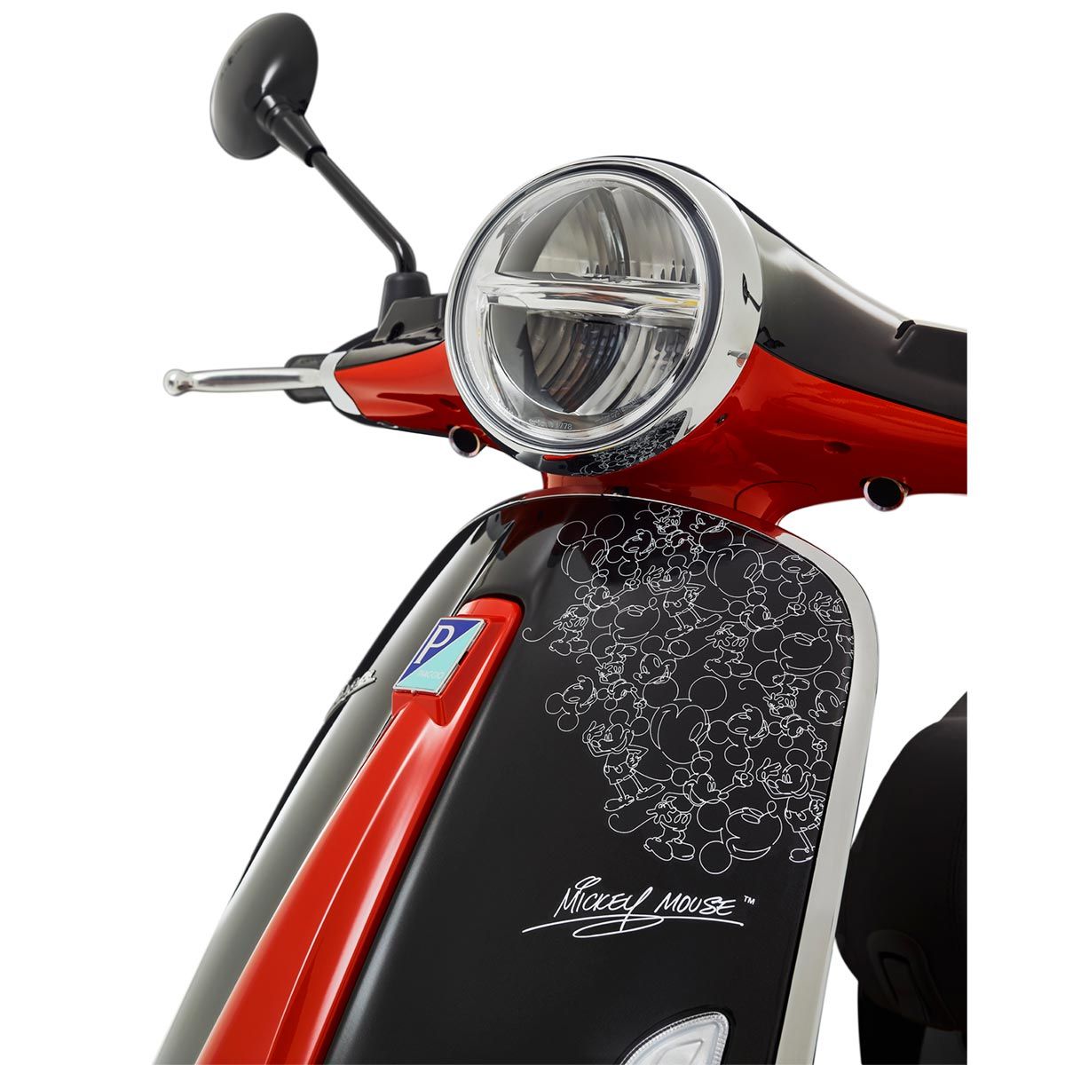 Primavera以可愛的米奇老鼠設計呈現在這次的合作中,Vespa Primavera 125/150c.c.以經典的米奇顏色作為主題,採用了黑色、紅色、白色和黃色的配色。這些色彩象徵了華特·迪士尼數十年來最著名的角色形象。
