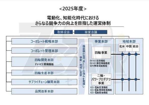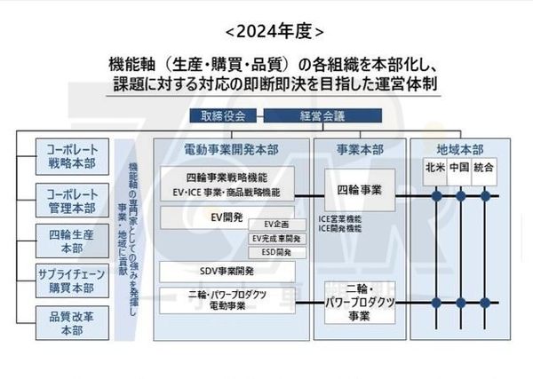 二輪與動力產品事業本部的組織重新編制方面,Honda 將二輪暨動力產品電動事業部併入二輪暨動力產品事業本部中,以強化 Honda 在二輪與動力產品電動化的進一步發展。Honda 表示,透過今年將實施的營運組織體制改革,將加速企業轉型,並在電動化時代持續創造新的價值,致力於成為一家「被世界期待的企業」。