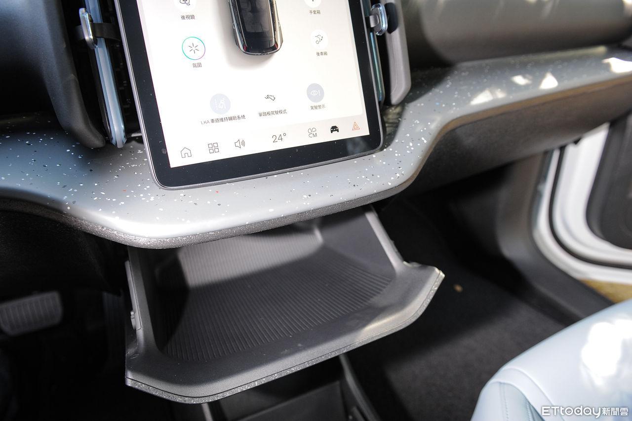 ▲中控台下方有置物空間,不過需由中控螢幕操作開啟,無實體按鍵。