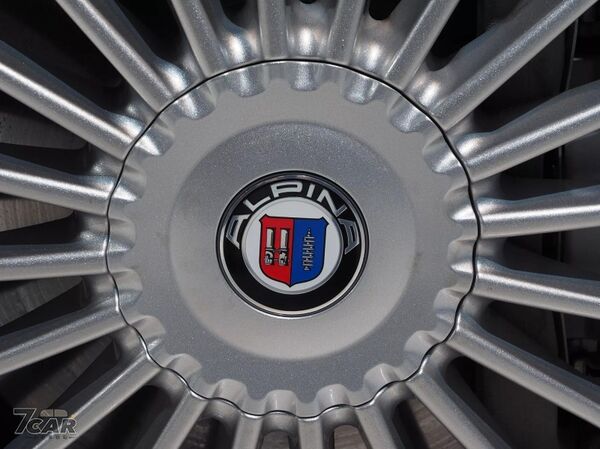 值得注意的是,這組輪圈並非目前性能車常見的內凹式設計,而是採用略為外凸的造型,輻條在外緣處向內收攏,延續過往 Alpina 輪圈偏向優雅與辨識度的設定。
