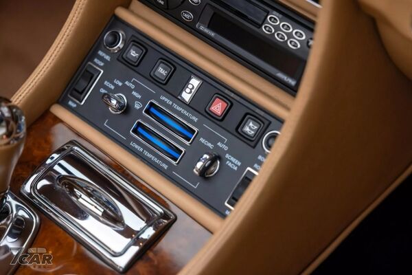 內裝方面,可見加熱真皮座椅(黑色滾邊選配)、胡桃木飾板與金屬飾件,並配備 Alpine 音響系統與 CD 換片機,整體保有 1990 年代高級 GT 車款的典型配置。